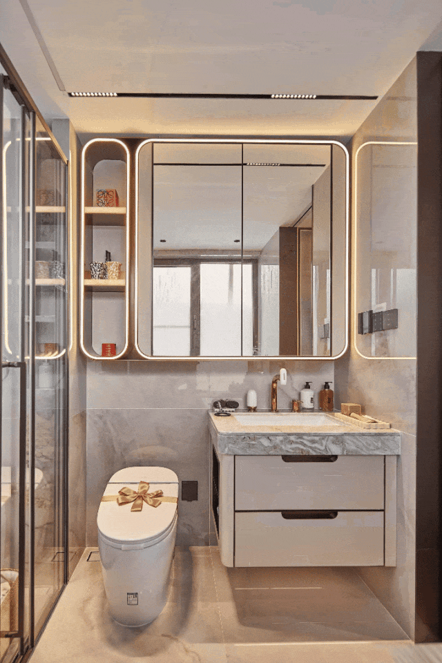 尺度的越级:四开间朝南,客厅大面宽,相当于“把别人家的客厅搬进了自己家”.独立玄关形成“入户缓冲区”,避免开门见厅的尴尬;双套房设计,主卧套间配备独立卫浴,卫浴空间引入“双台盆+浴缸+淋浴”的三段式设计,堪比五星级酒店套房.